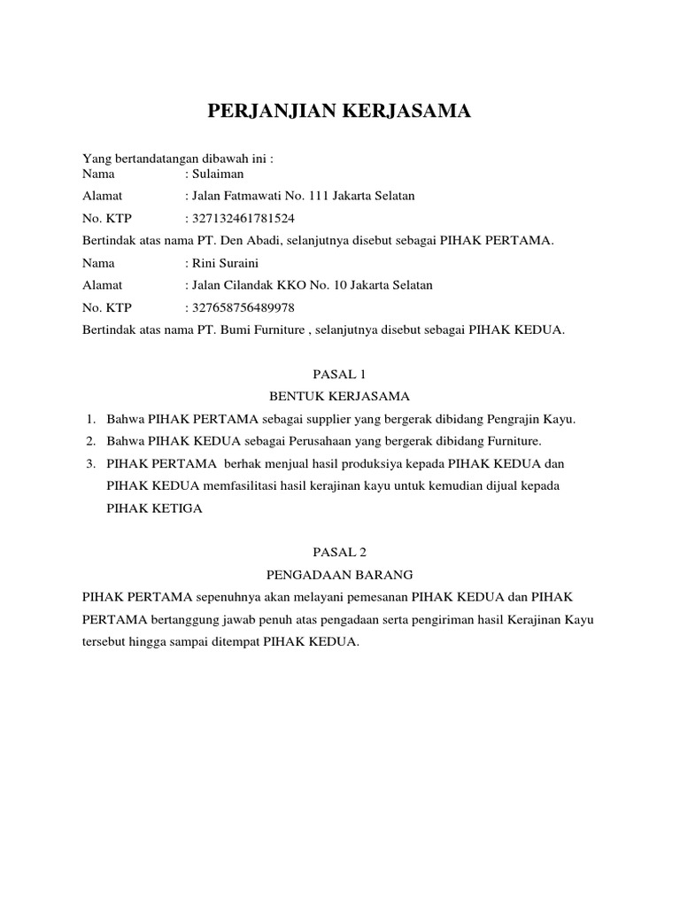 Surat Perjanjian Kerjasama Dibidang Mebel Pdf